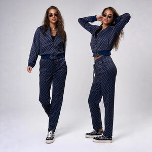 クロスボーダーカジュアルアマゾンヨーロッパとアメリカのファッションスーツ長袖ジッパージャケットトップレースアップパンツレディースツーピースセット