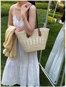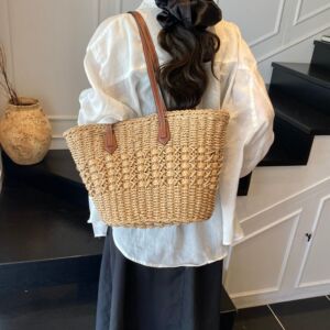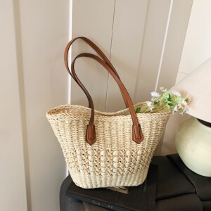 メーカー卸売インターネットセレブ手織り多用途織バッグ大容量トートビーチ休暇ショルダーわらバッグ