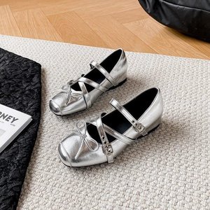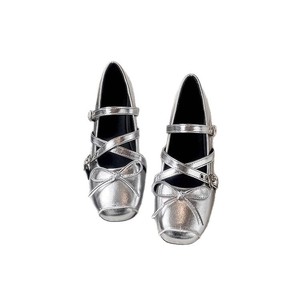 シルバーインナー高さバレエシューズ女性のための夏 2025 新しいフレンチリボンメリージェーンシューズフラット大きいサイズの女性の靴
