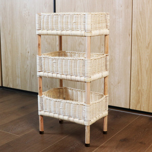 床置き籐収納ラック B&B 装飾雑貨収納ラック カントリースタイル手織り無垢材多層収納バスケット