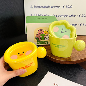 漫画 Minini セラミックコーヒーカップ蓋付きかわいい IP マグ家庭用ウォーターカップ子供の日のギフトお土産