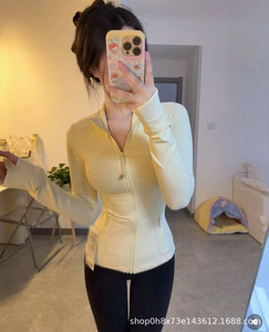 新色〜ルル同スタイル Defina クリームイエロー スタンドカラージャケット スリムフィット レディース 2025 新作 スポーツ ヨガウェア