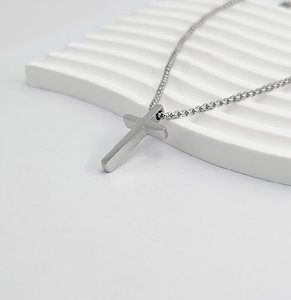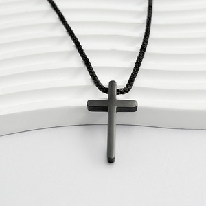 ヨーロッパとアメリカのチタン鋼クロスロングネックレスメンズトレンド刻印可能なペンダント光沢のあるシンプルな信仰ネックレス卸売