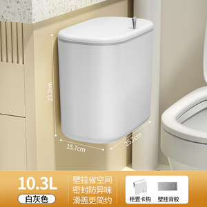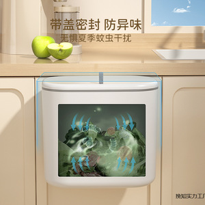 蓋付き壁掛けゴミ箱、家庭用隙間浴室キッチン、蓋付き生ごみ吊り下げペーパーバスケット、壁掛け、穴あけ不要