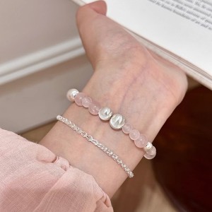 s925 スターリングシルバーつや消しキャットアイビーズブレスレットナチュラルホースパウダークリスタルブレスレット女性のシンプルなニッチピーチブロッサムハンドジュエリー