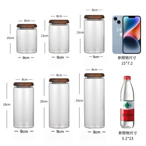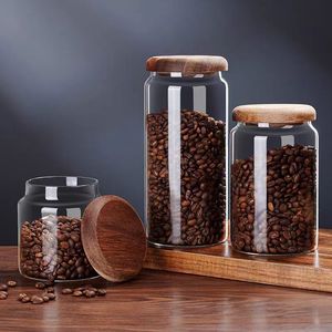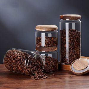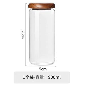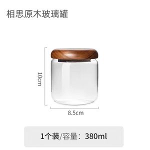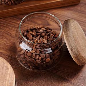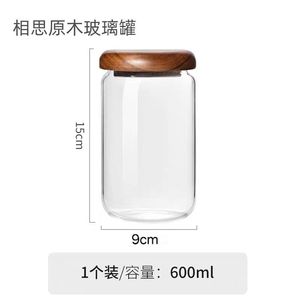 シンプルな透明ガラス保存瓶無垢材蓋ラウンド小型保存瓶家庭用乾物穀物コーヒー密封瓶