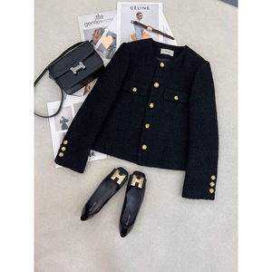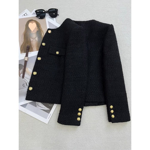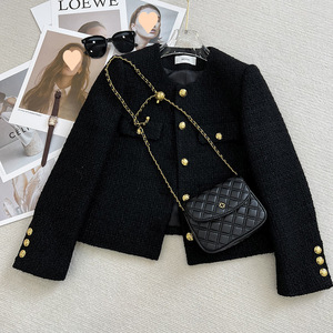 2025年新款秋冬高级感圆领小香风短款外套女小个子法式粗花呢黑金