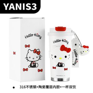 2025 新しいハローキティ魔法瓶カップ女性の見栄えの良い誕生日ギフトストローコーヒーカップ保冷水カップ