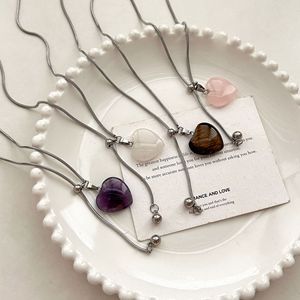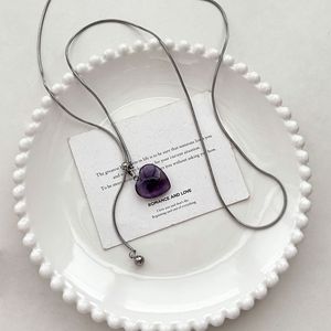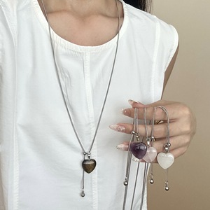 カラフルな天然石ラブチタン鋼ネックレス女性用韓国インニッチデザインハイエンドシンプルで多用途なセーターチェーン