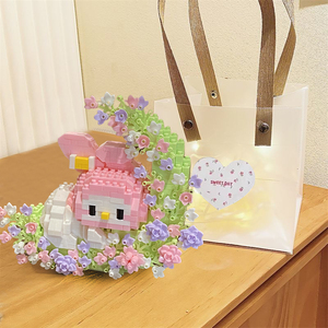 ハローキティ パチャ犬 シナモン 微粒子ビルディングブロック 花 誕生日プレゼント 女の子 知育組み立ておもちゃ