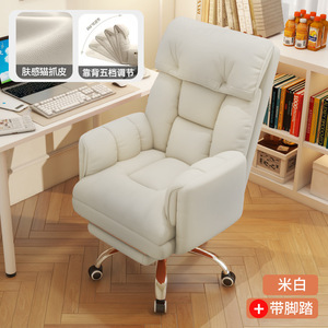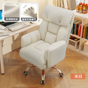 オフホワイト[猫爪レザー]調節可能な背もたれ+スチール製の足+固定肘掛け