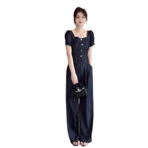 2025 夏の新ファッション気質アイスシルクテンセルデニム Tシャツトップ + ハイウエストストレートパンツカジュアルスーツ女性のための