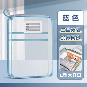 L字型科目バッグ、科目分類バッグ、透明メッシュファイルバッグ、ジッパー付き大開口学生試験トートバッグ