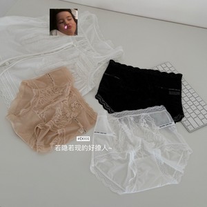 TAMIMA サテン真珠光沢のあるライトプレスシリーズ超薄型メッシュミッドハイウエスト快適なフレンチレースリボン下着女性用