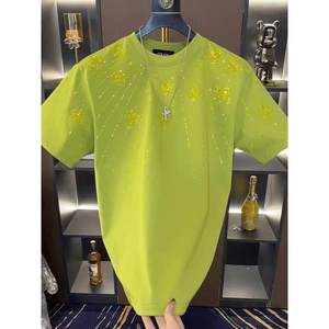 2025 新しい半袖夏メンズラウンドネックライト高級トレンドヘビーデューティホットダイヤモンド多用途ファッション半袖トップ Tシャツ