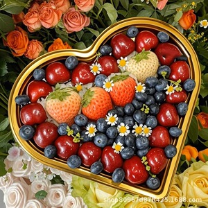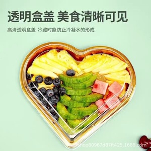 心形水果包装盒金色车厘子草莓樱桃果切高档塑料透明带盖打包盒子