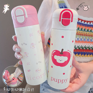 316 ステンレス鋼のダブルドリンク魔法瓶カップ女の子のための見栄えの良いウォーターカップストローカップ付きかわいい漫画の子供と学生カップ