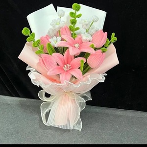 ツイストフラワー、チューリップ、ローズ、完成したミックスアンドマッチブーケ、男性と女性の友人への手作りの小さな新鮮なバレンタインデーギフト