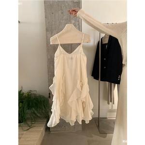 法式荷叶边吊带连衣裙女2025春季新款内搭小个子短裙娃娃裙