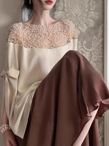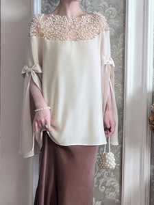 中国の美的ハイエンド南油レディースマントスタイルシャツ 25 夏新重工業パールライスアプリコット不規則なトップ