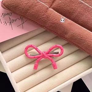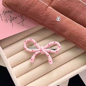 梦梦仙贝~韩系简约波点粉色蝴蝶结鸭嘴夹ins百搭刘海边夹发饰碎发