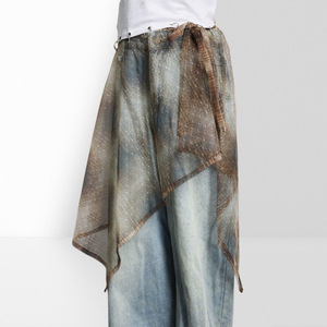 2025不規則な新しい韓国風レースガーゼスカート、万能ストラップデザインエプロンスカート