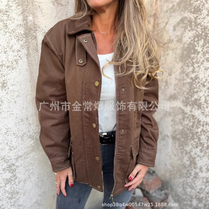 中東貿易 2025 秋冬新作アマゾンヨーロッパとアメリカの女性のためのルーズカジュアル長袖ボタンラペルジャケット