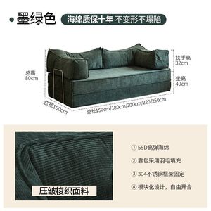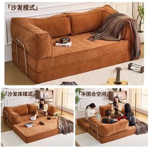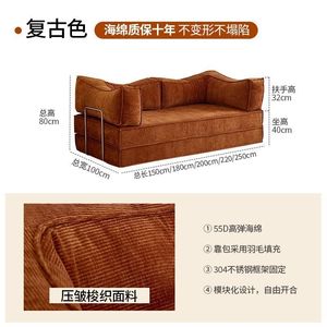 ファブリックソファ折りたたみデュアルユースソファベッドリビングルームミッドセンチュリースタイル圧縮家庭用小型モジュールプリンソファ