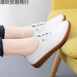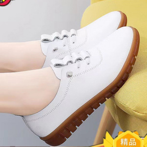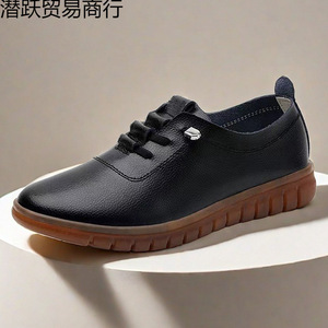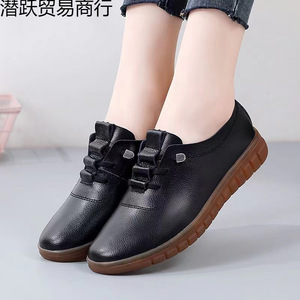 牛筋底革表面防水滑り止めキッチンシューズ作業靴ママ黒革靴布靴女性