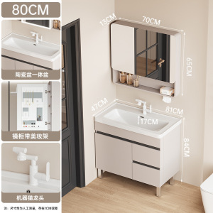 奶咖80cm右小门 加深盆+普通美妆镜柜