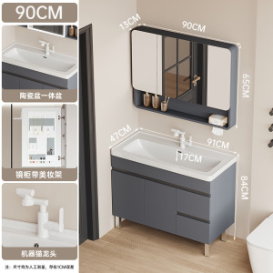 灰90cm右小门 加深盆+圆弧层架普通镜柜