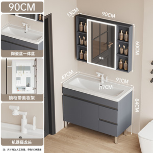 灰90cm右小门 加深盆+圆弧层架智能镜柜