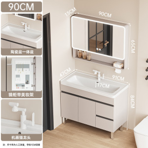 奶咖90cm右小门 加深盆+普通美妆镜柜