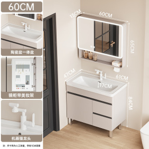 蜂窝铝落地式带腿浴室柜加深陶瓷一体盆卫生间洗手台盆卫浴柜组合
