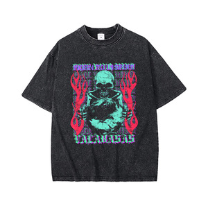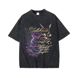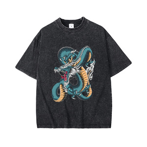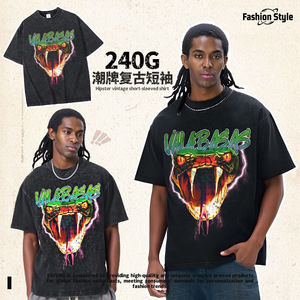 跨境男装毒蛇印花男女短袖t恤潮牌美式复古宽松纯棉重磅水洗上衣