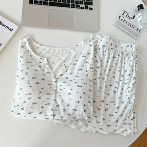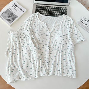 女の子のための胸パッド付きフレンチスイート小花柄半袖パジャマ、新しい夏スタイル、外出用ショーツ、ホームウェアセット