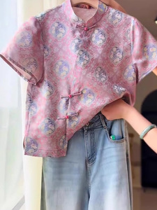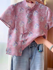 新しい中国風のライトラグジュアリー年齢軽減ピンクジャカードトップ女性のための 2025 夏の新しいスタイル優しいニッチハイエンド半袖