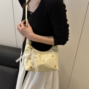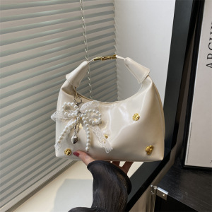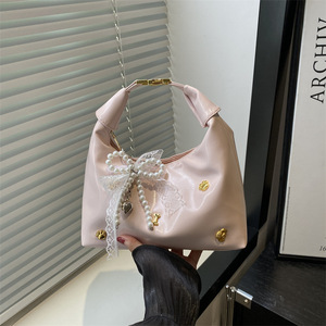 ファッショナブルな手元餃子バッグ 2025 新しいニッチシンプルなシングルショルダークロスボディバッグ無地リボンパーソナライズされた小さな正方形バッグ