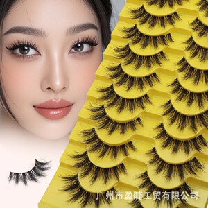 ヨーロッパとアメリカのクロスボーダーの濃密なナチュラルフライドまつげの10組、イミテーションミンクキャットアイのロシアの濃密なつけまつげ