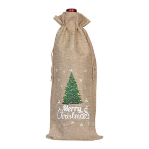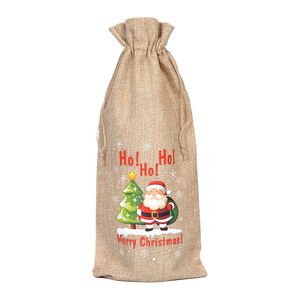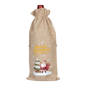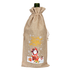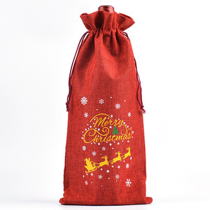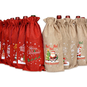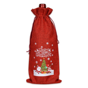 跨境热销圣诞卡通红酒袋套装圣诞派对抽绳葡萄酒礼品袋麻布束口袋
