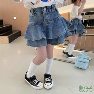 女の子デニムスカート夏の新しいベビースカート子供スカートケーキスカート少女スタイルパンツスカート