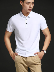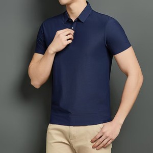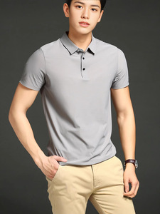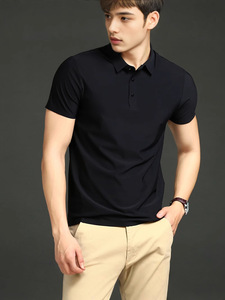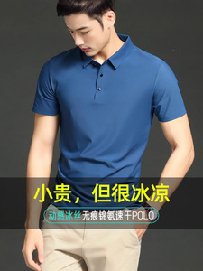 2025 新しい夏のアイスシルク半袖ポロシャツメンズナイロンシームレスストレッチソリッドカラー薄い襟付き Tシャツ男性用