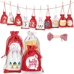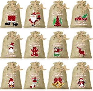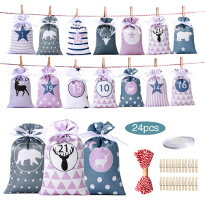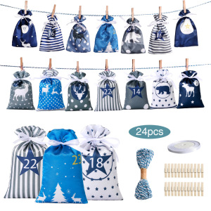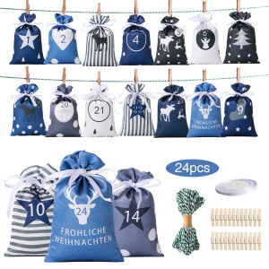 クロスボーダー 2025 新しいクリスマスリネンバッグ巾着ポケットアドベントカレンダーハンギングバッグクリスマスギフトバッグセット