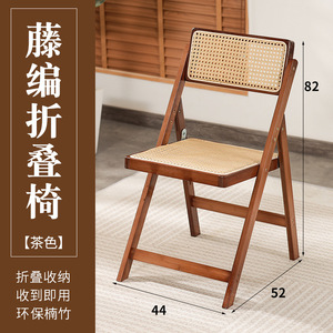 わびさびスタイル籐椅子家庭用折りたたみ椅子竹無垢材スツール背もたれダイニングチェア北欧ログスタイルダイニングチェア