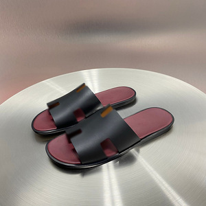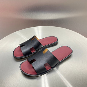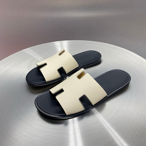 ヨーロッパステーションフラットスリッパ 2025 夏新本革 H 文字ファッションスリッポンメンズカジュアルビーチサンダル