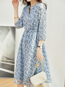 花柄ドレス女性 2025 夏春の新ファッション気質ウエスト痩身シフォンロングスカートシンプルな通勤