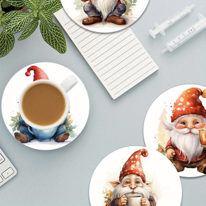 クロスボーダーアマゾンホットセールラウンド木製コースタークリスマスデコレーションサンタクロースホリデーデコレーション