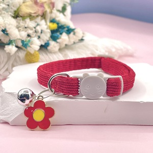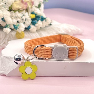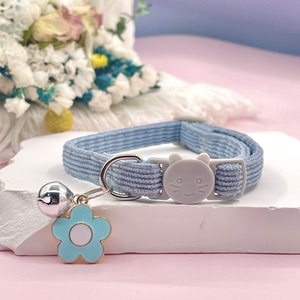 ペットコーデュロイフラワーペンダント首輪猫首輪犬ベル調節可能な安全バックル首輪工場直販