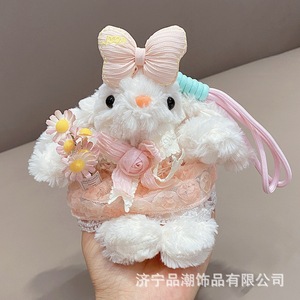 MR210m ホワイトスカート花瓶垂れ耳ウサギペンダント、ピンクストラップ