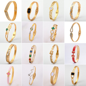 工場直販チタン鋼ブレスレット、18Kリアルゴールドメッキ、色褪せしない、女性向けの洗練されたファッショナブルで多用途なブレスレット、ハイエンド